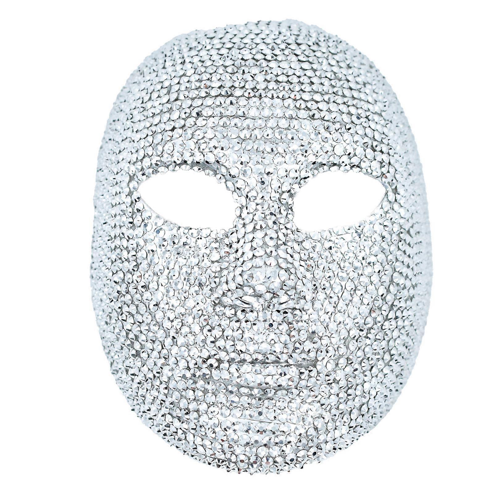Rhinestones Masquerade Mask Light Weight Comfortable Wear Full Face Mask for Men Women Masquerade Halloween Supplies Silver