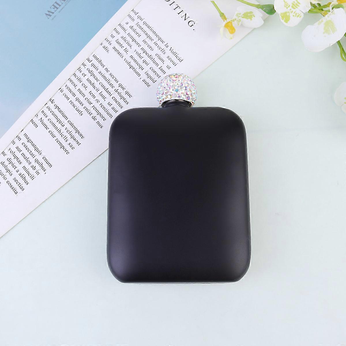Rhinestone Mini Lightweight Stainless Steel Flagon for Women, Portable Travel Design, Matte Black Finish