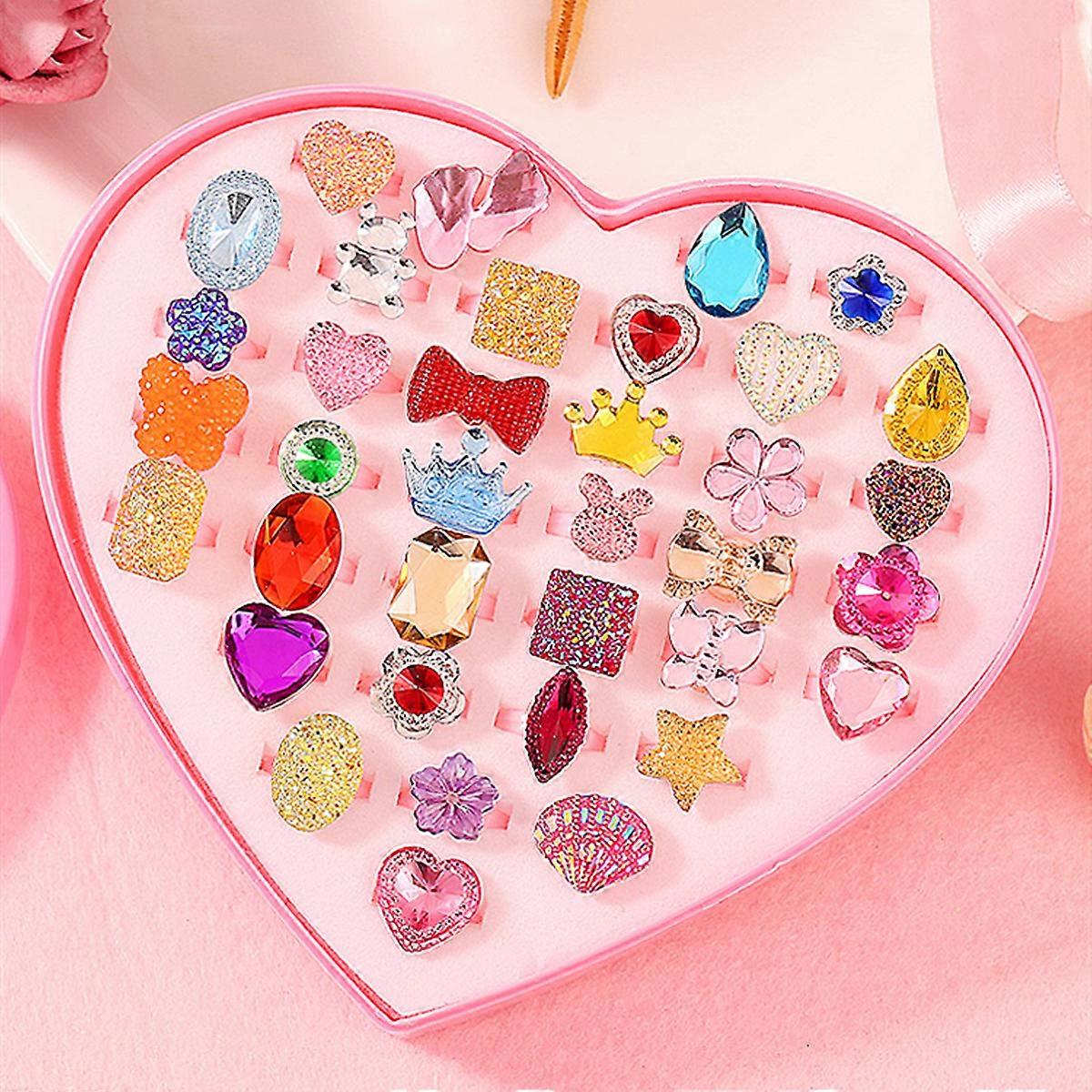 36PCS Fancy for Rhinestone Ring Girls Shiny Plastic Rings Children Party Cos-play Dress Accs Jewelry Party Props Kids Gi