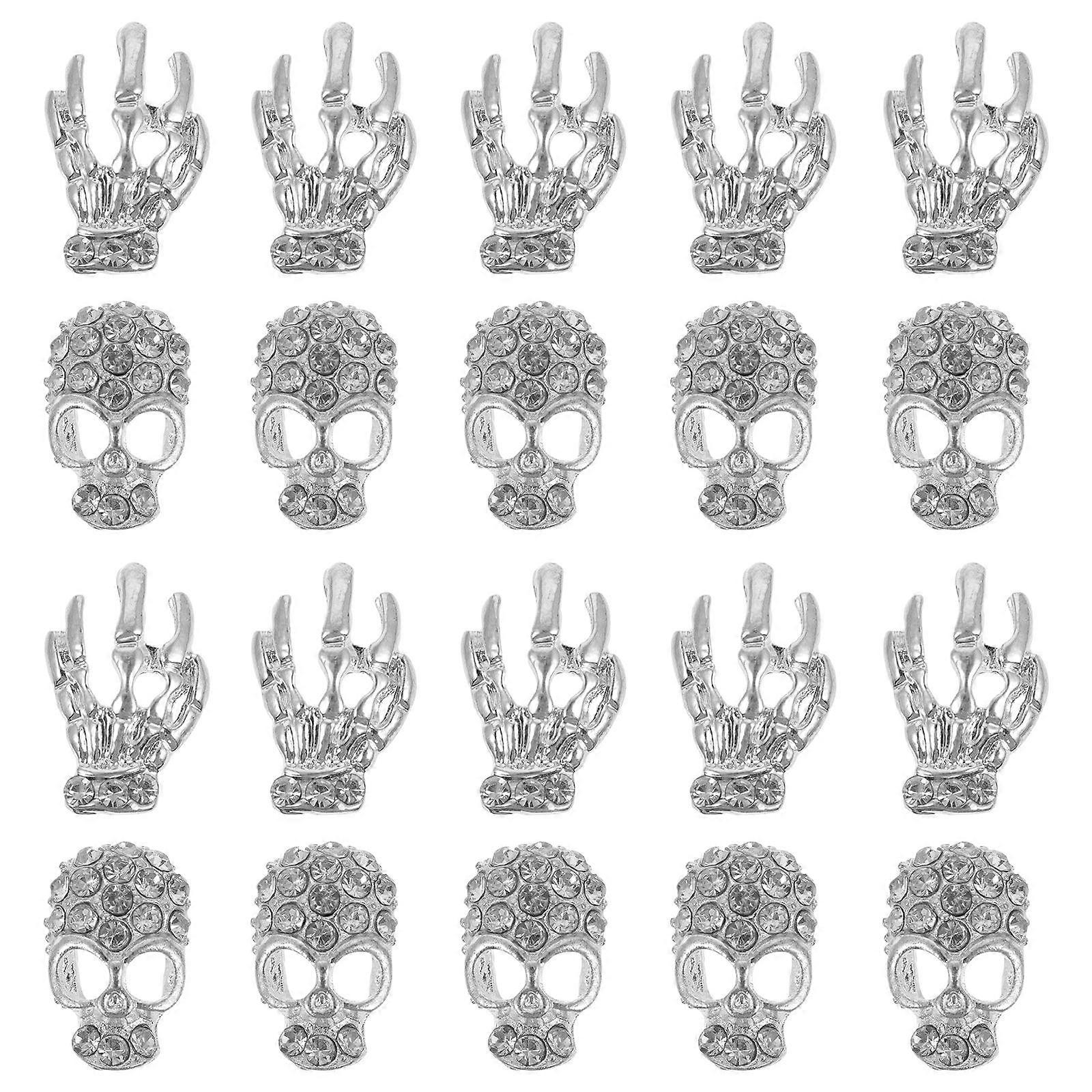 Skull Nail Charms with Rhinestones 40pcs Nail Art Decor for Halloween, Carnival Manicure Easy Apply & Remove Jewelry Accessories
