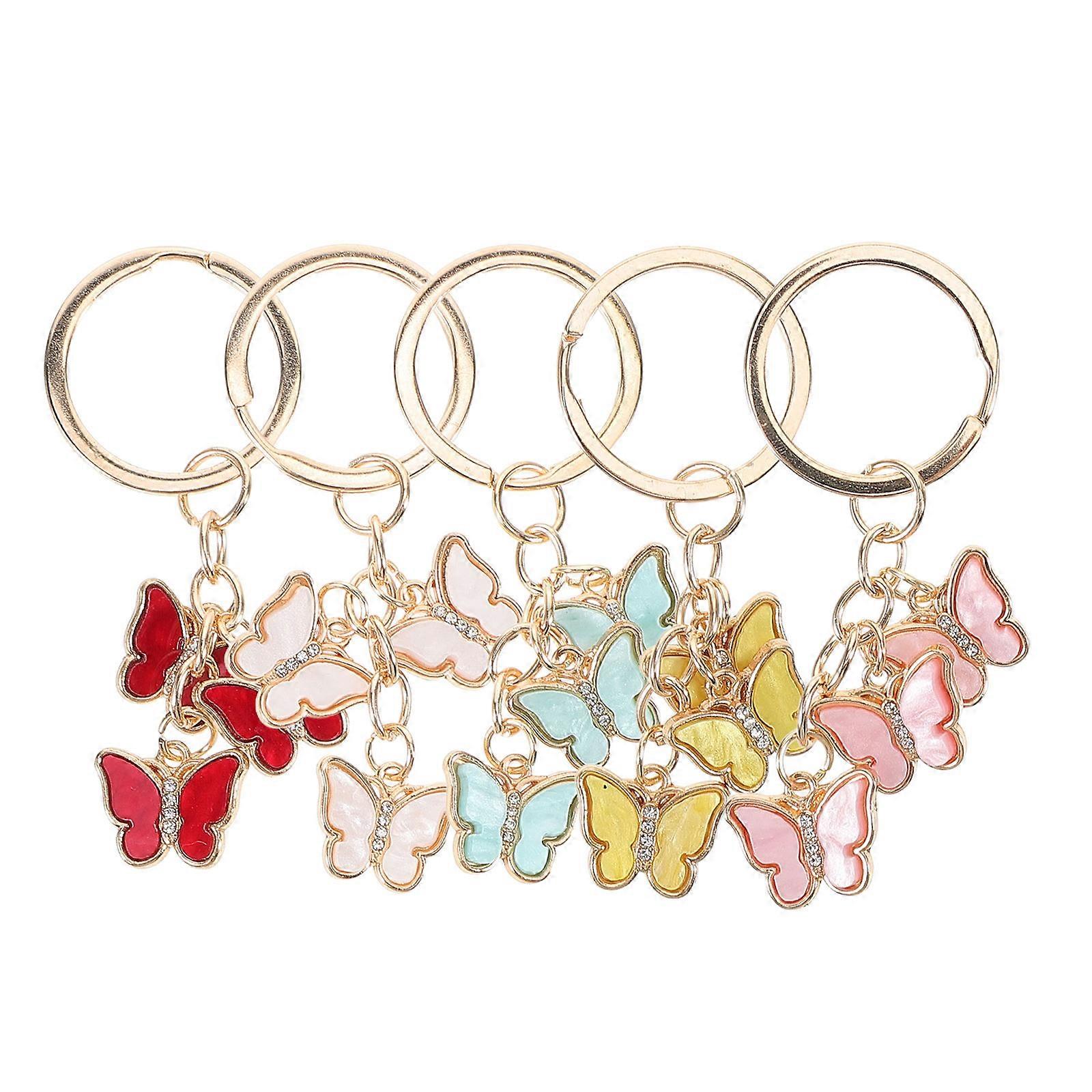 Durable Butterfly Keychain with Rhinestones Assorted Color Decorative Keyring for Bag Wallet Size 5pcs