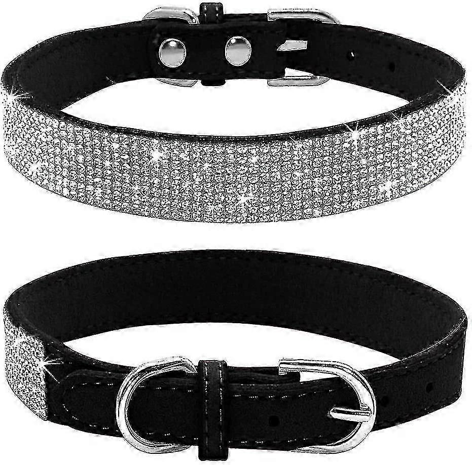 Rhinestone Dog Collar, Cute Dazzling Sparkling Soft Suede Leather Dog Cat Rhinestone Collar Crystal Diamond Pet Dog Puppy Collar (xs, Black) Z
