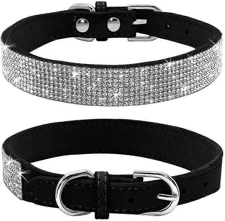 Rhinestone Dog Collar, Cute Dazzling Sparkling Soft Suede Leather Dog Cat Rhinestone Collar Crystal Diamond Pet Dog Puppy Collar (xs, Black)