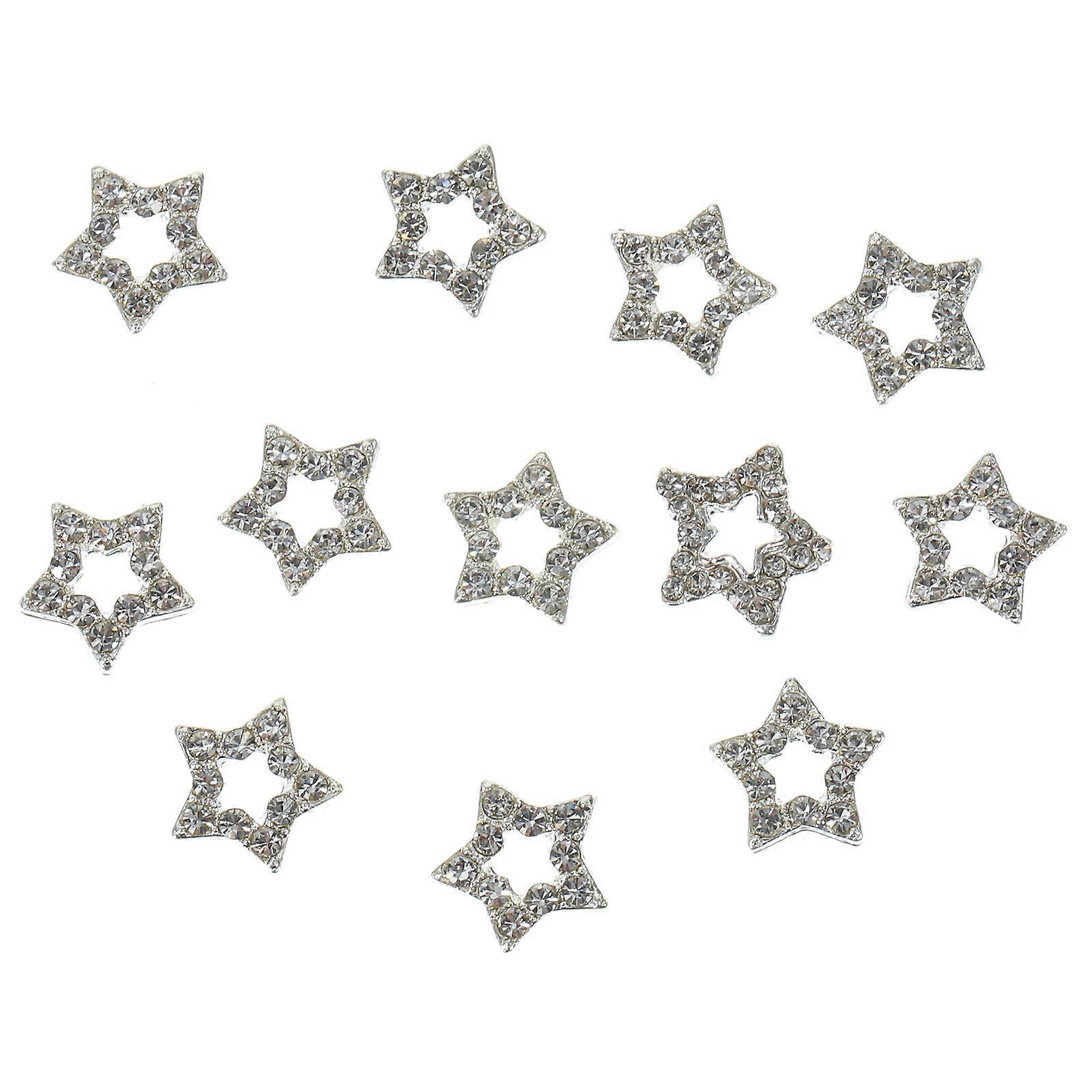 Star Shaped Nail Charms with Rhinestone Decoration 12 Pieces Silver Alloy for Nail Art Supplies