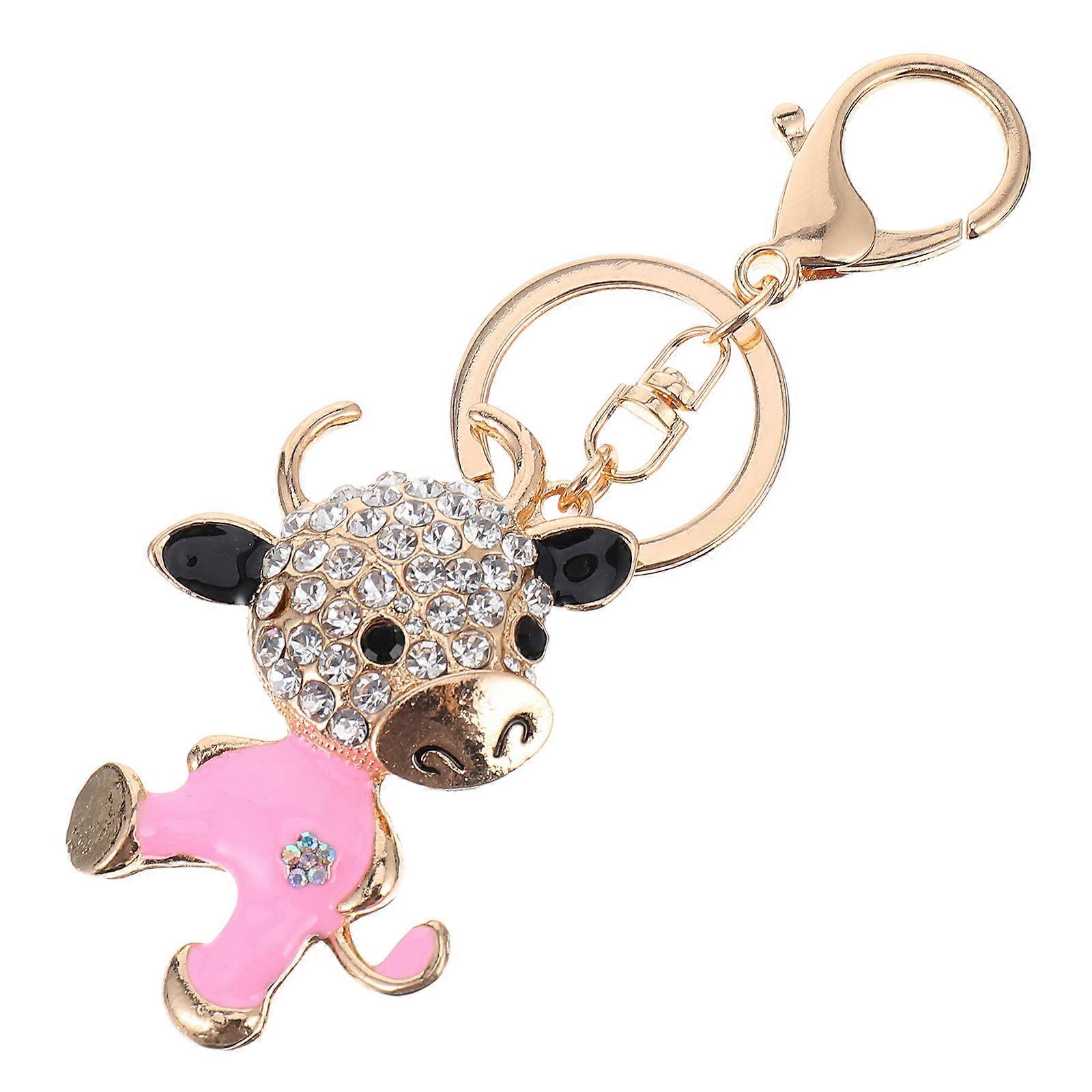 Rhinestone Inlaid Chinese Zodiac Ox Keychain Pendant Durable Bag Charm with Adorable Cartoon Design for Women's Handbags and Backpacks