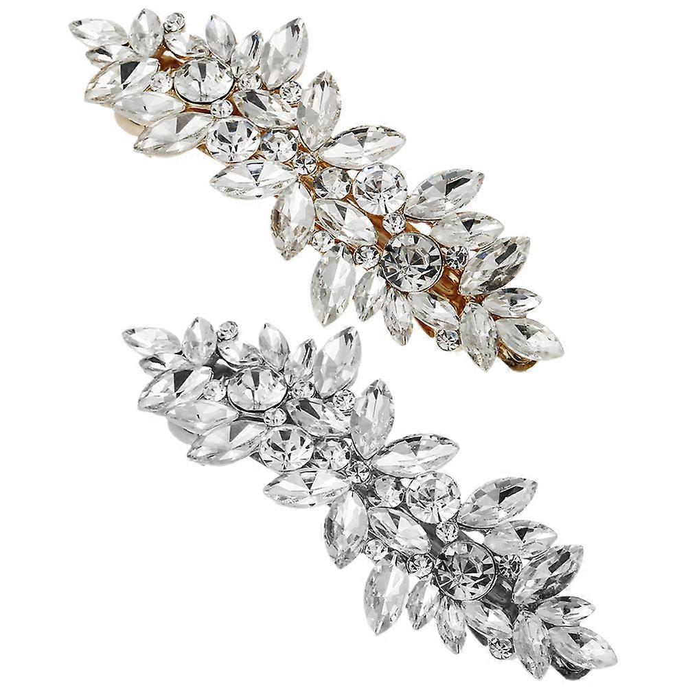 Rhinestone Hair Clips Set of 2 Durable Spring Barrette Hairpins for Weddings, Parties, and Special Occasions