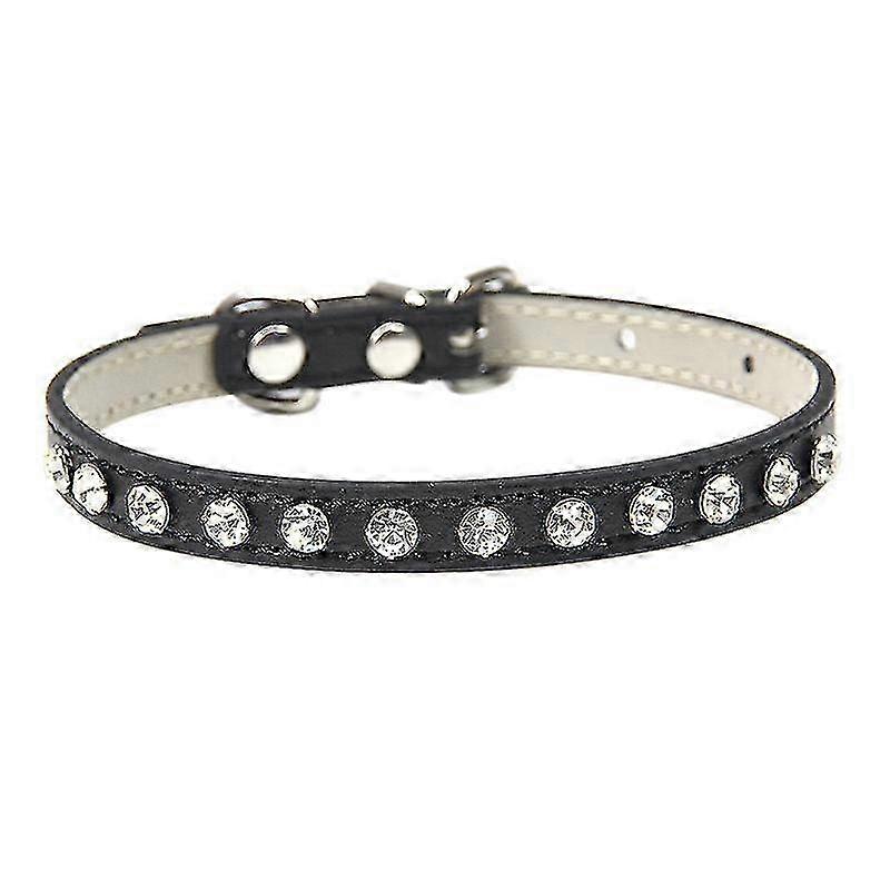Rhinestone PU Leather Dog Cat Collar Black (20-28cm, 1pc)