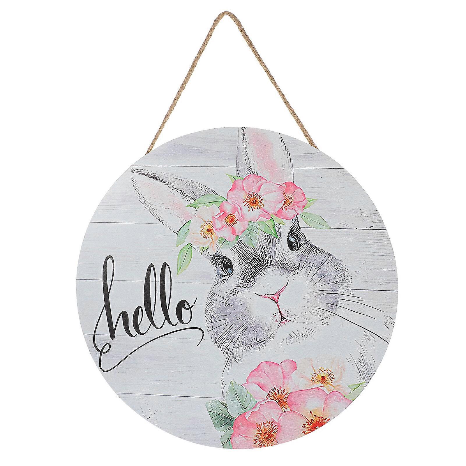 Round Easter Wood Sign Easter Wooden Hanging Plaque Easter Front Door Sign Easter Welcome Sign