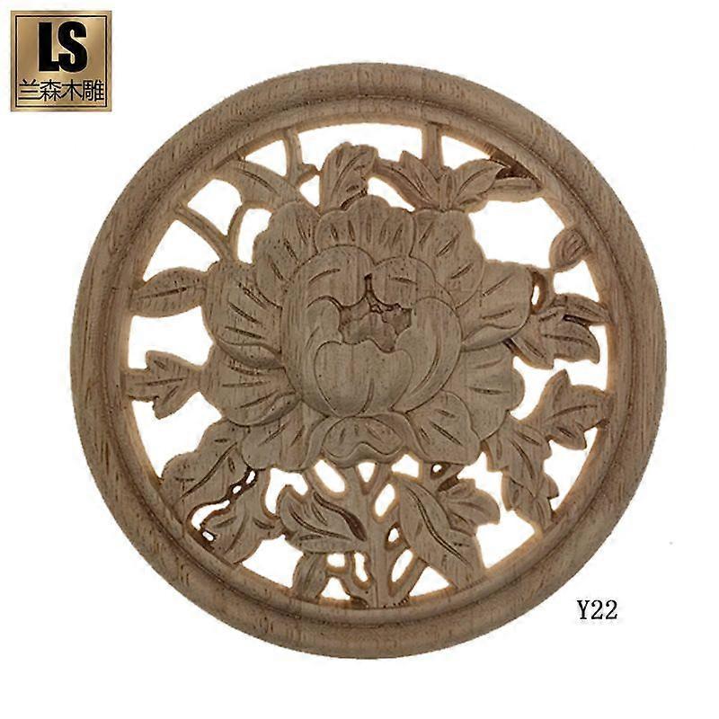 Round Wood Appliques Onlays: Unpainted Wooden Carved Flower Carvings Decals - For Wall Cupboard Mantel Door Bed Cabinet Dresser Furniture Mirror 24cm