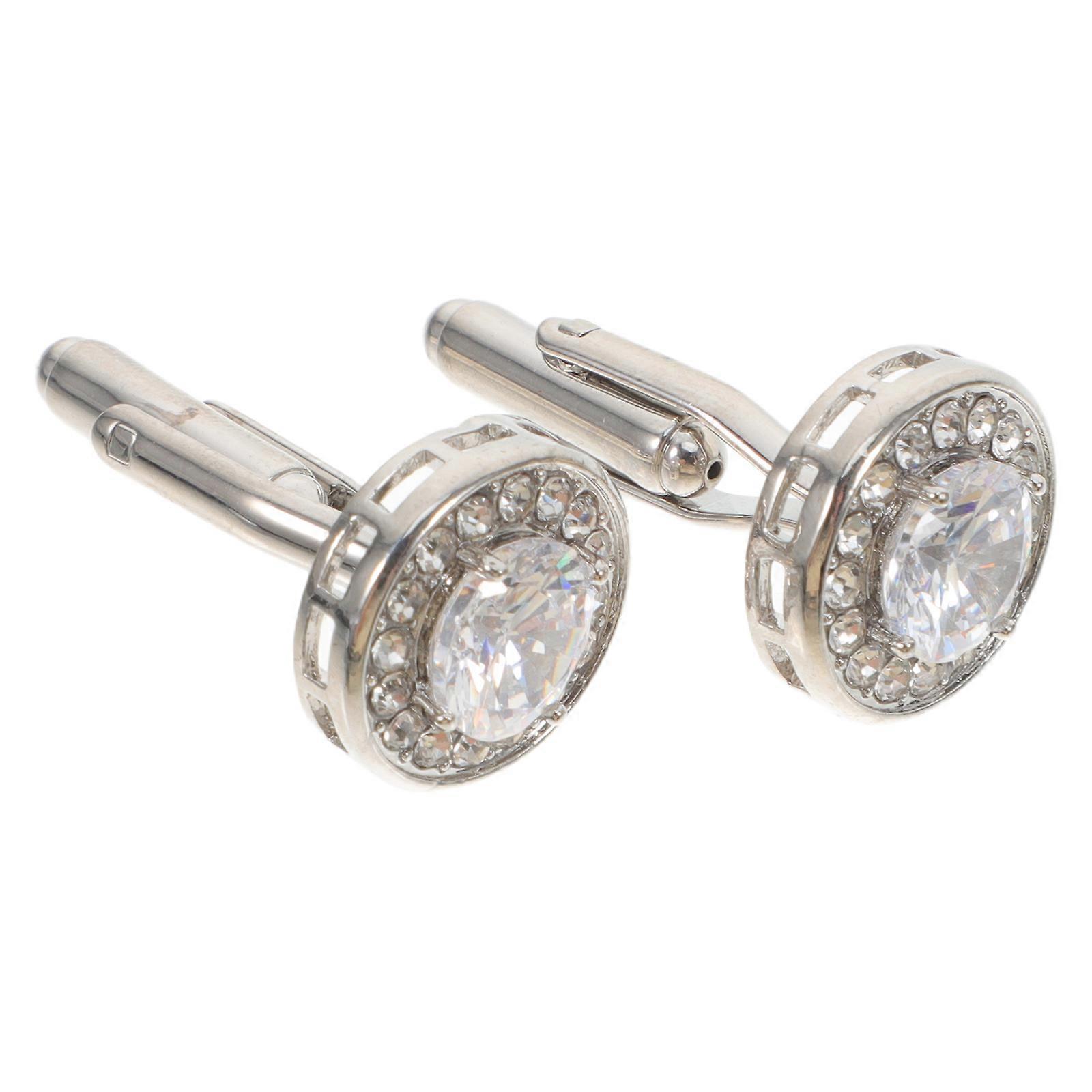 Round Cufflinks Shirts Cufflinks Shirt Cuff Buttons for Men Women Special Occasions Zircon Alloy Chrome-Plated Silver 1.6 x 2.5cm 1 Pair