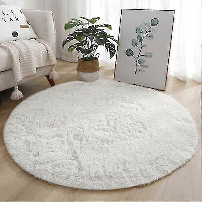 Round Carpet Living Room Cream Carpet 120x120cm Bedroom Carpet White Fluffy Carpet Thickened 4cm Faux Fur Carpet Soft Round Carpet Room Decor Non-slip
