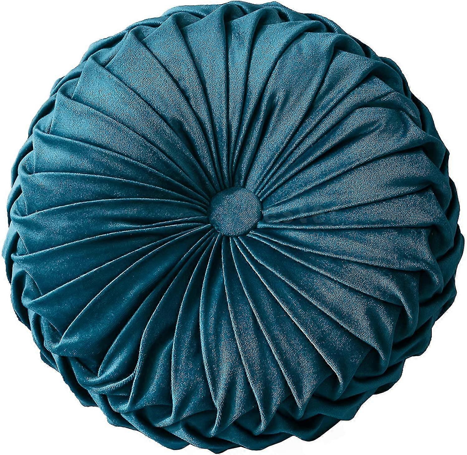 Round Cushion Pillow 35cm, Solid Color Velvet Chair Sofa Pumpkin Throw Pillow Folding Round Pillow