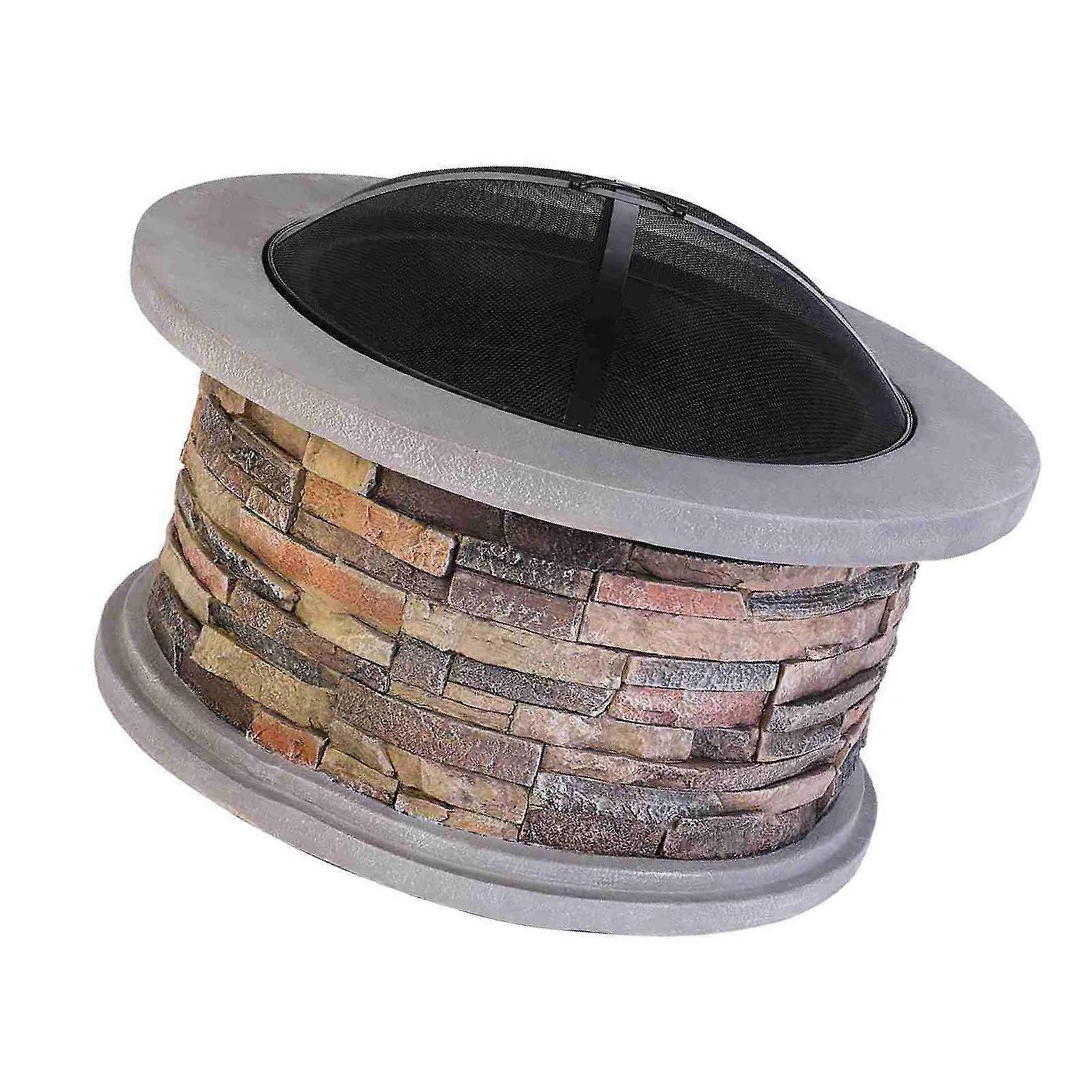 Round Concrete Outdoor Fire Pit 20.5in x 36.2in Brown Wood Burn