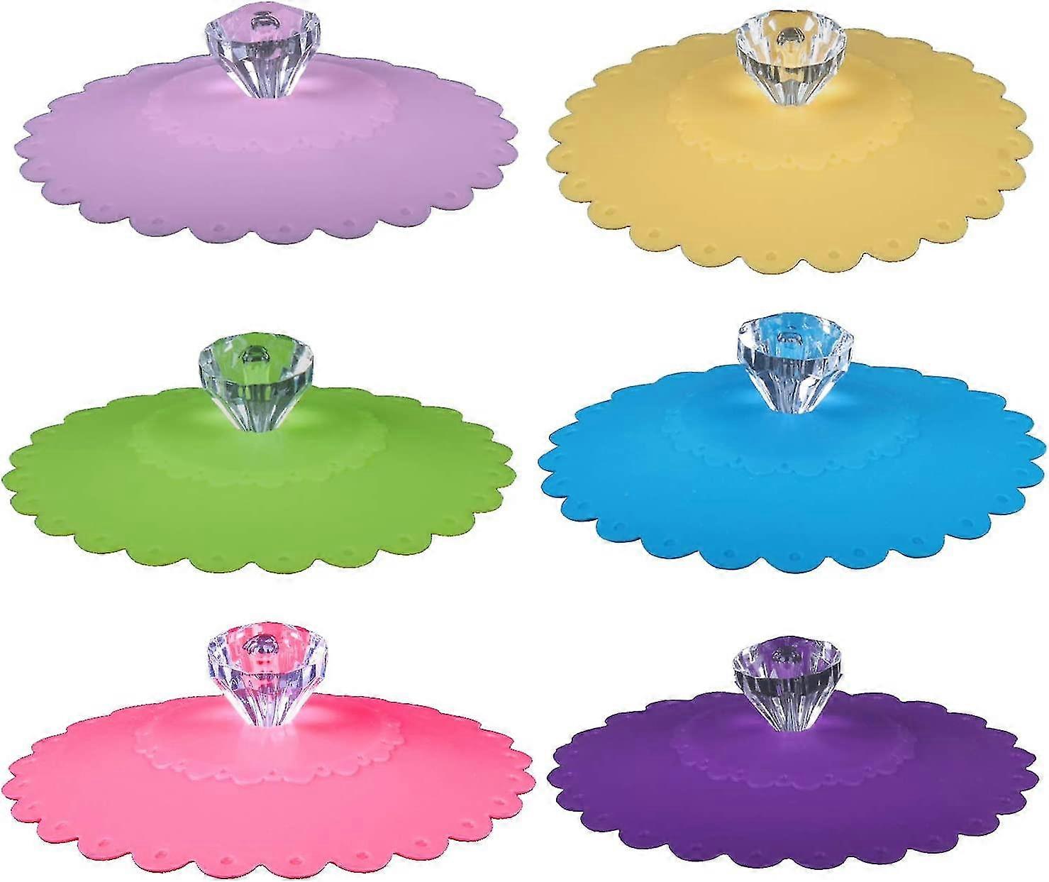 Round Diamond Shaped Silicone Cup Lids Glass Covers Reusable Dustproof Reusable Silicone Cup Lids 6 Set (random Color)