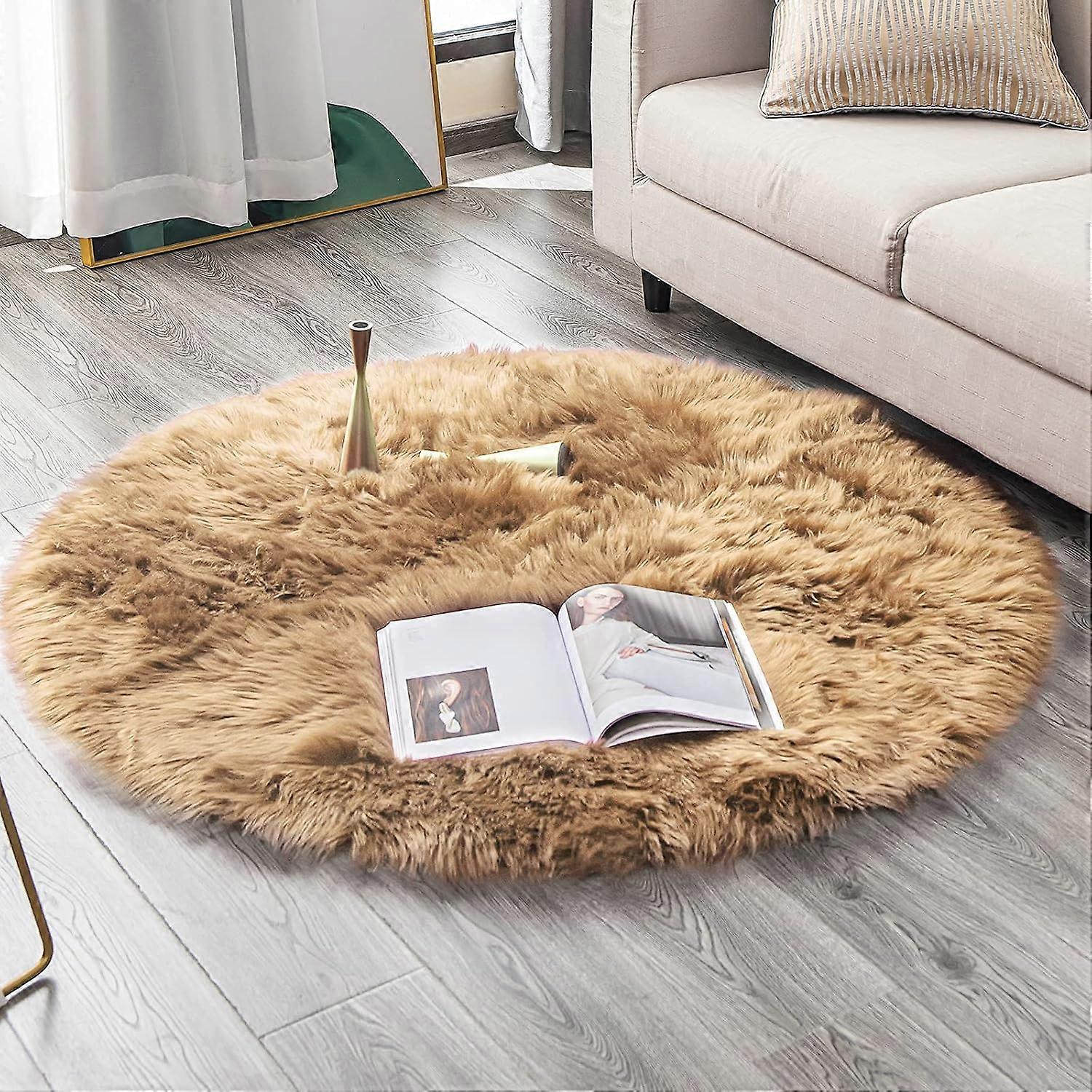 Round faux fur sheepskin rug soft faux fur throw rug home decor living room floor rug circular bedside rug for bedroom soft circle children's play rug