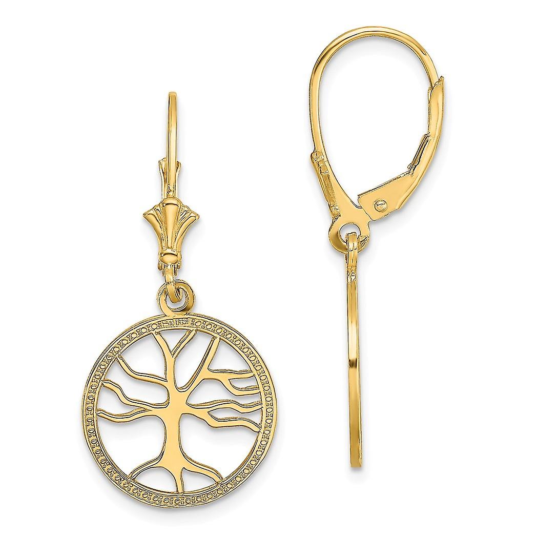 14k Gold Tree Of Life In Round Frame Leverback Earrings Cut out(2of 32.5x15mm Wide Stud Earring for Women