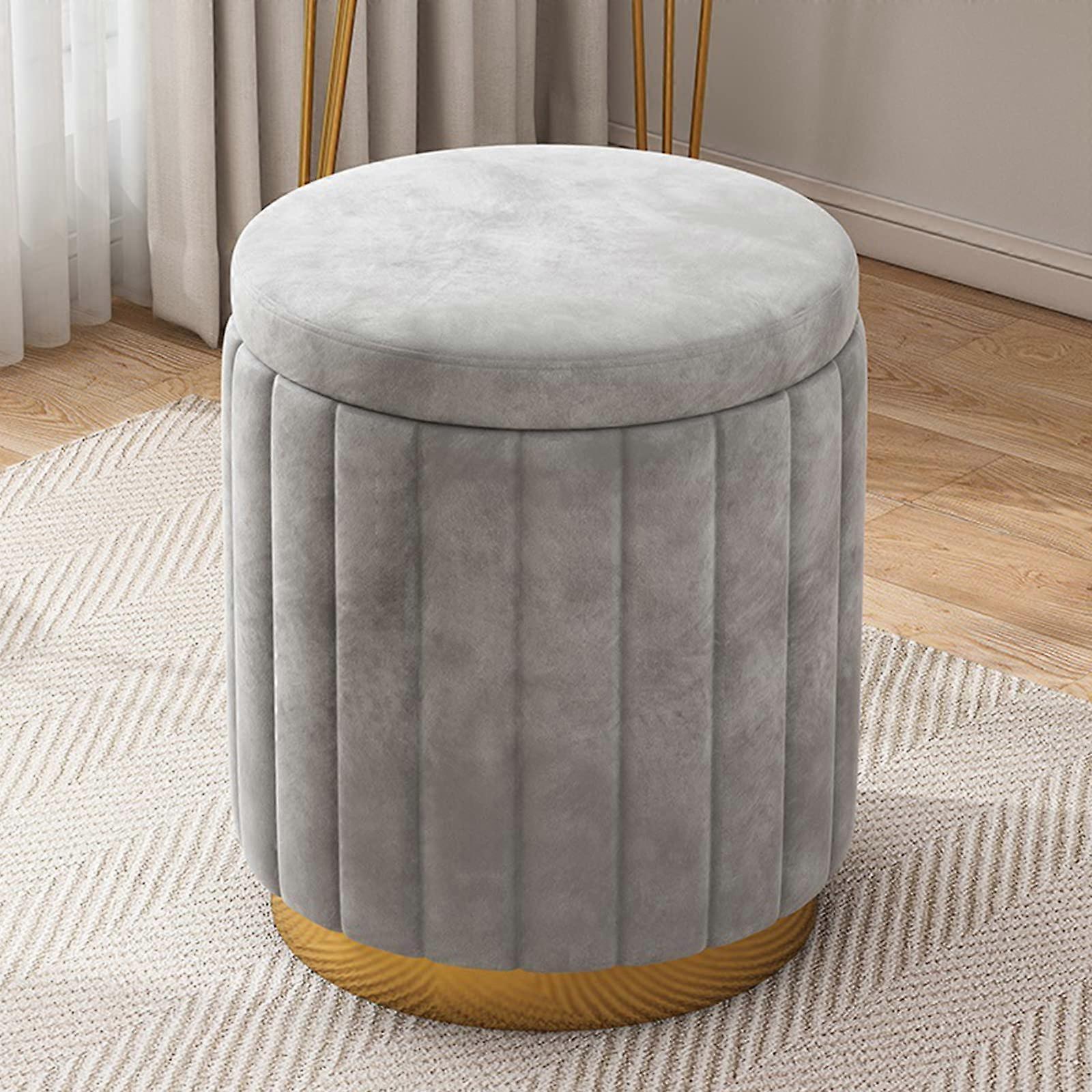Round Velvet Padded Footrest Stool with Gold Base Grey 34x34x45cm