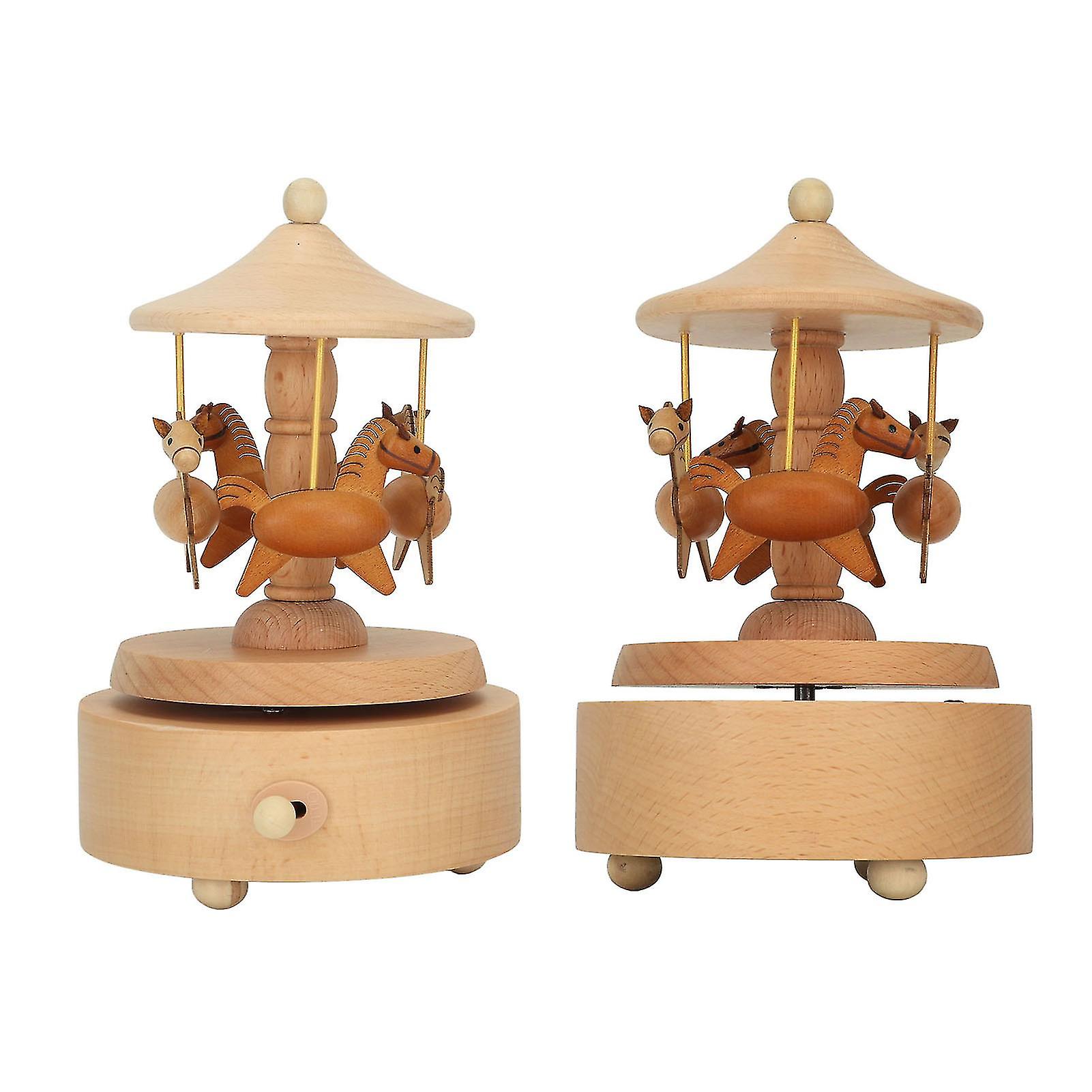 Rotating Music Box with Round Base Swinging Wooden Horse Musical Box Birthday Gift Handicraft