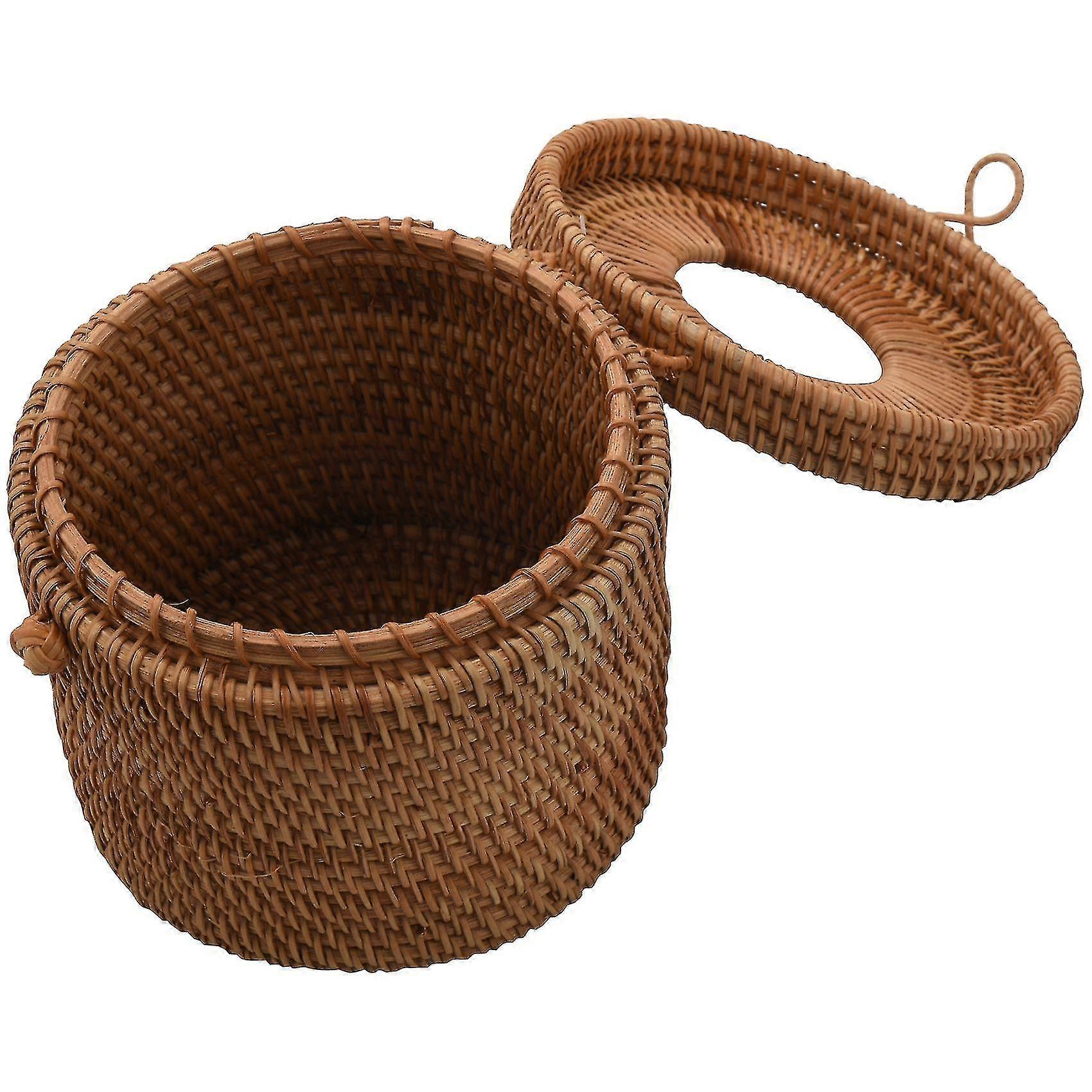 Round Rattan Tissue Box Vine Roll Holder Toilet Paper Cover Dispenser For Barthroom,home,hotel And