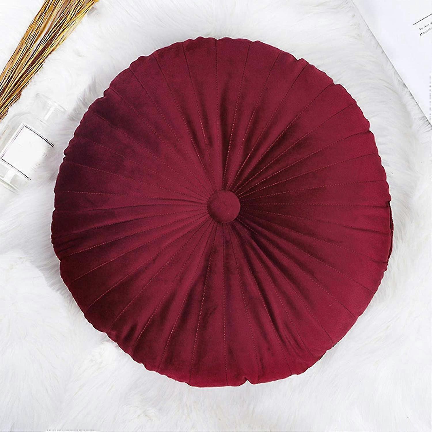 Round Filled Cushion, Solid Velvet Chair Cushion, Pleated Round Pillow, Car Pumpkin Shaped Floor Seat Cushion, For Sofa, Couch, Chair, Bed(wine Red)