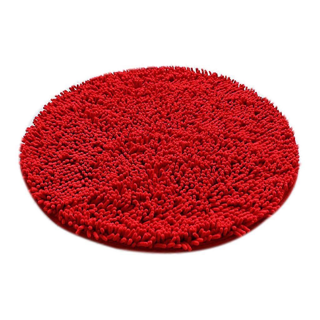 Round Non-slip Microfiber Shaggy Bathroom Mat Absorbent Carpet Dia. 60cm Red