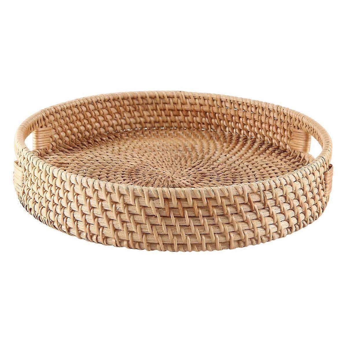 Round Rattan Serving Tray Decorative Woven Ottoman Trays with Handles for Coffee Table Natural(Small)