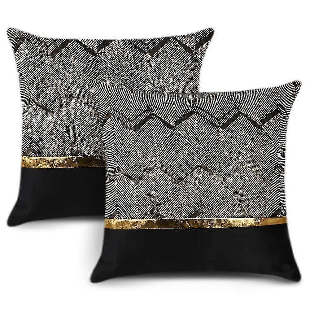 Luxury Modern Cushion Covers Set of 2 - Golden Stitch Wave Stripes 50x50cm Black