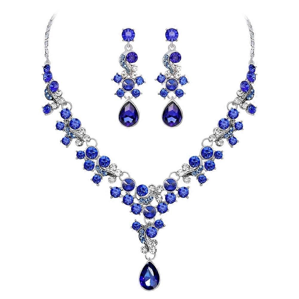 Luxury Women Rhinestone Flower Necklace Ear Stud Earrings Wedding Jewelry Set