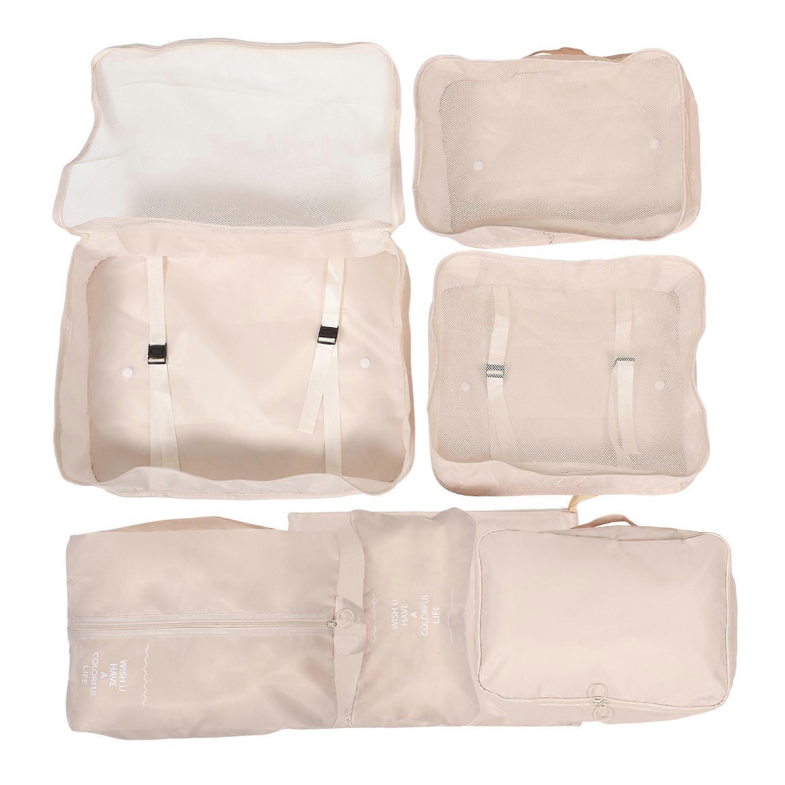 Luggage Cubes Travel Packing Organizers Beige Waterproof Material Versatile Storage Solutions 7Pcs