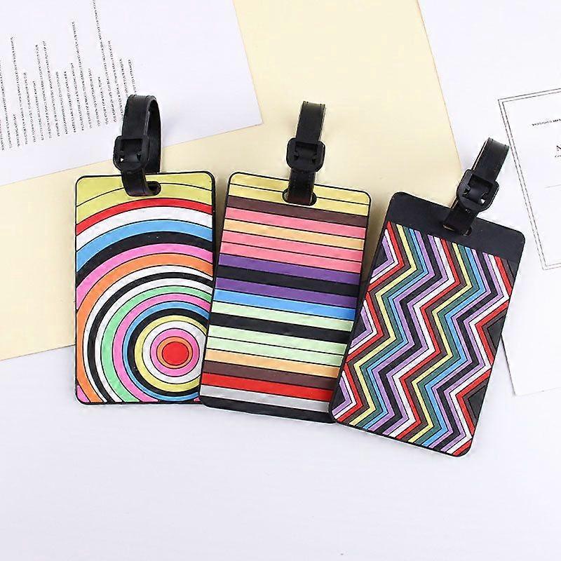 About this item Colorful unique design 3 designs of tag for travel, good decoration for your suitcases or luggage. Bright colors and distinct patterns to help identify luggage or suitcases easily. Great gift idea for people who love to travel, different colors and patterns to choose from so you can use it on several types of luggage. Also doubles as a school bag tag for kids.
