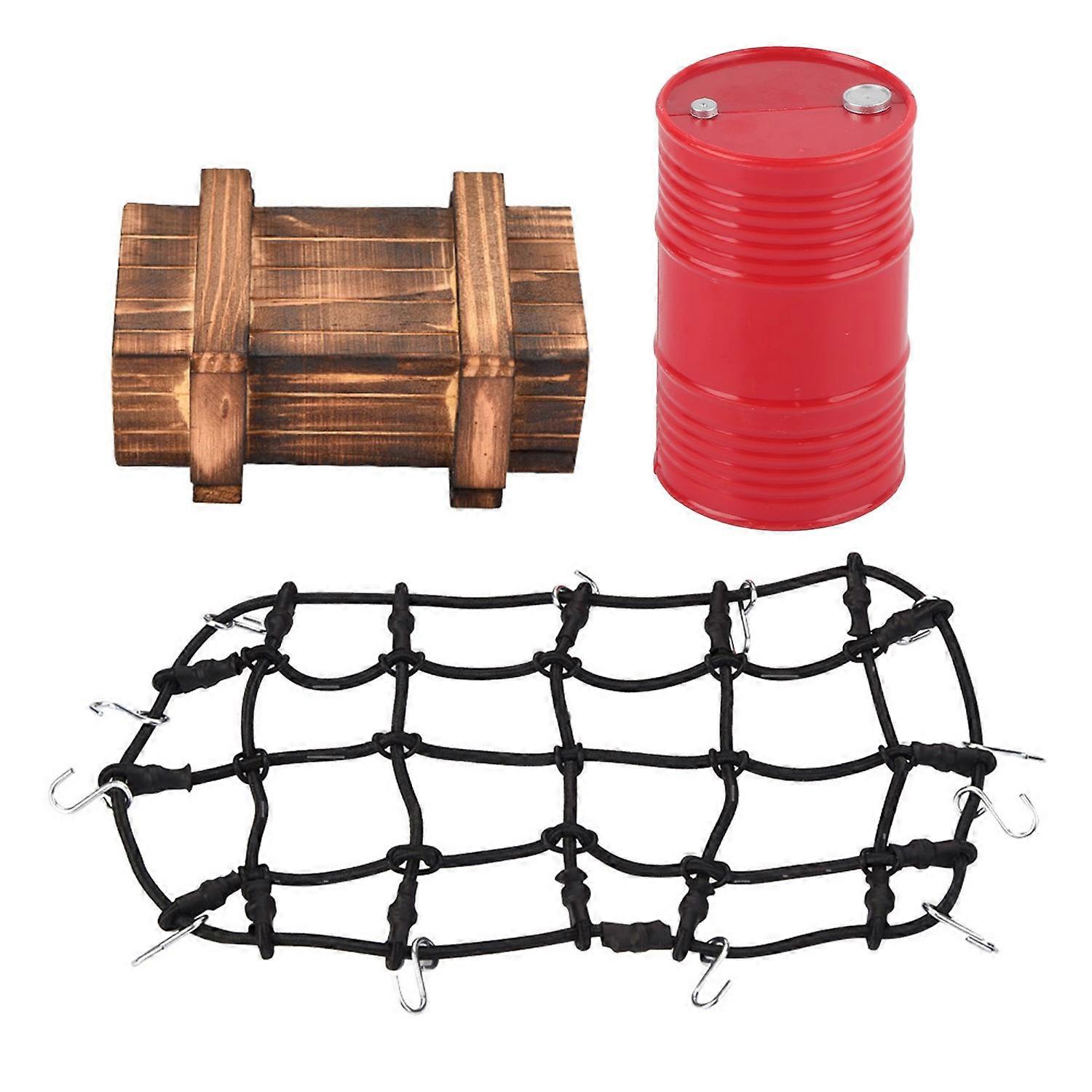 Luggage Net Wooden Box Decorative Oil Drum Set for 1/10 Scale RC Crawler Car