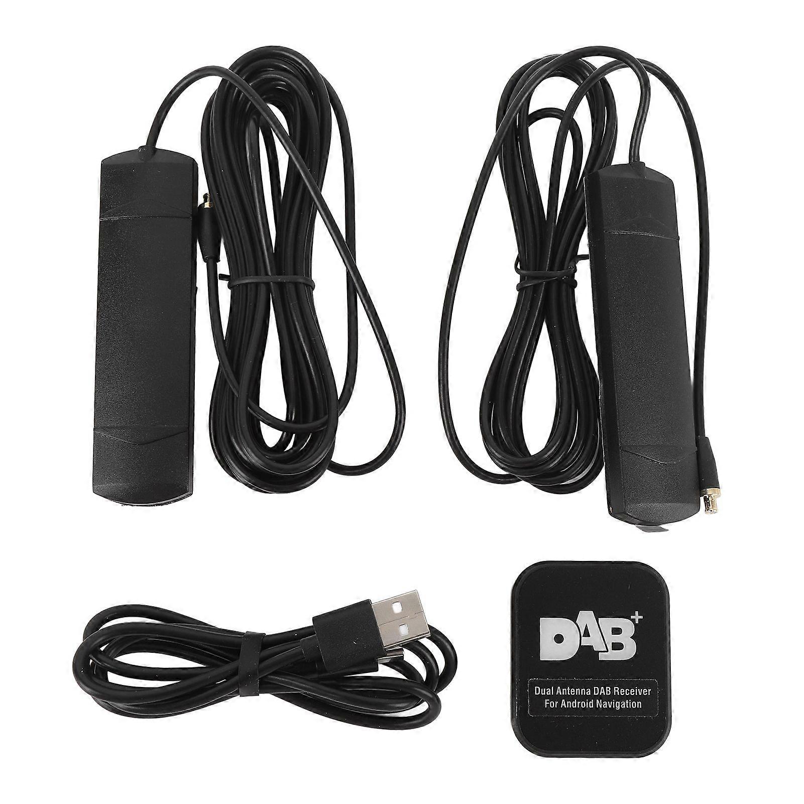 Feature 1HIGH DEFINITION SOUND : DAB technology delivers exceptional sound , allowing you to enjoy clear sound experience for music, news, and talk shows. Explore a wide range of broadcast channels and content to meet different daily needs. 2STABLE SIGNAL: Advanced digital signal reception technology ensures stable radio signals, even in urban high rise buildings or winding mountain roads, allowing you to enjoy a wonderful radio companion on every journey. 3FULL COMPATIBILITY: The receiver is compatible with for Android Car Stereo, no complicated operations required. Simply plug and play design allows you to enjoy digital radio entertainment immediately. Experience the convenience of high technology in your busy life. 4SUPERIOR SENSITIVITY: Equipped with a sensitivity of -100dBm, this receiver ensures high signal reception , providing you with a seamless listening experience even in challenging signal environments. 5WIDE FREQUENCY RANGE: The receiver operates within the frequency range of 174 to 240MHz, ensuring compatibility with a variety of broadcast channels and allowing you to explore diverse content effortlessly.Item Type: DAB Digital Radio Receiver Kit Receiver Parameters:Voltage: 5V/50mASensitivity: -100dBmFrequency: 174-240MHzFitment: For Android Car Stereo Package List1 x Digital Broadcasting Receiver2 x Antenna1 x Wiring1 x User Manual