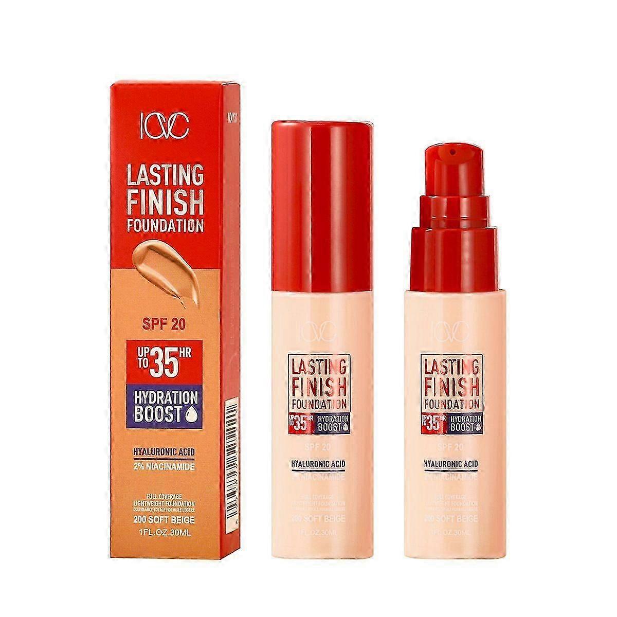Lasting Finish 35Hr Foundation 200 Soft Beige, Full Coverage, Hydrating, SPF20, Hyaluronic Acid, Vitamin E, 2% Niacinamide, All Day Wear, Vegan, Cruel