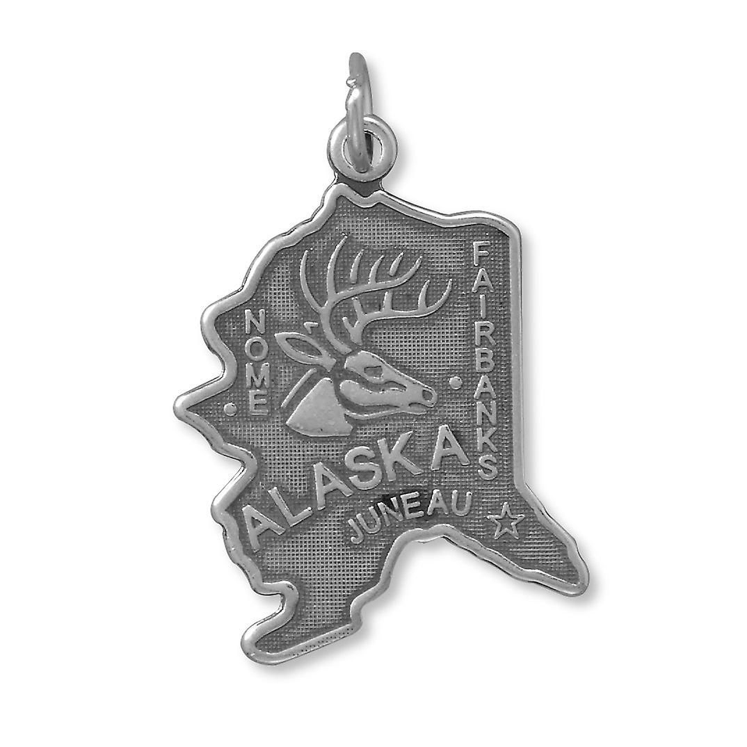 Welcome To Last Frontier State! Oxidized 925 Sterling Silver Alaska State Charm 17mm X 29mm Pendant Necklace for Women