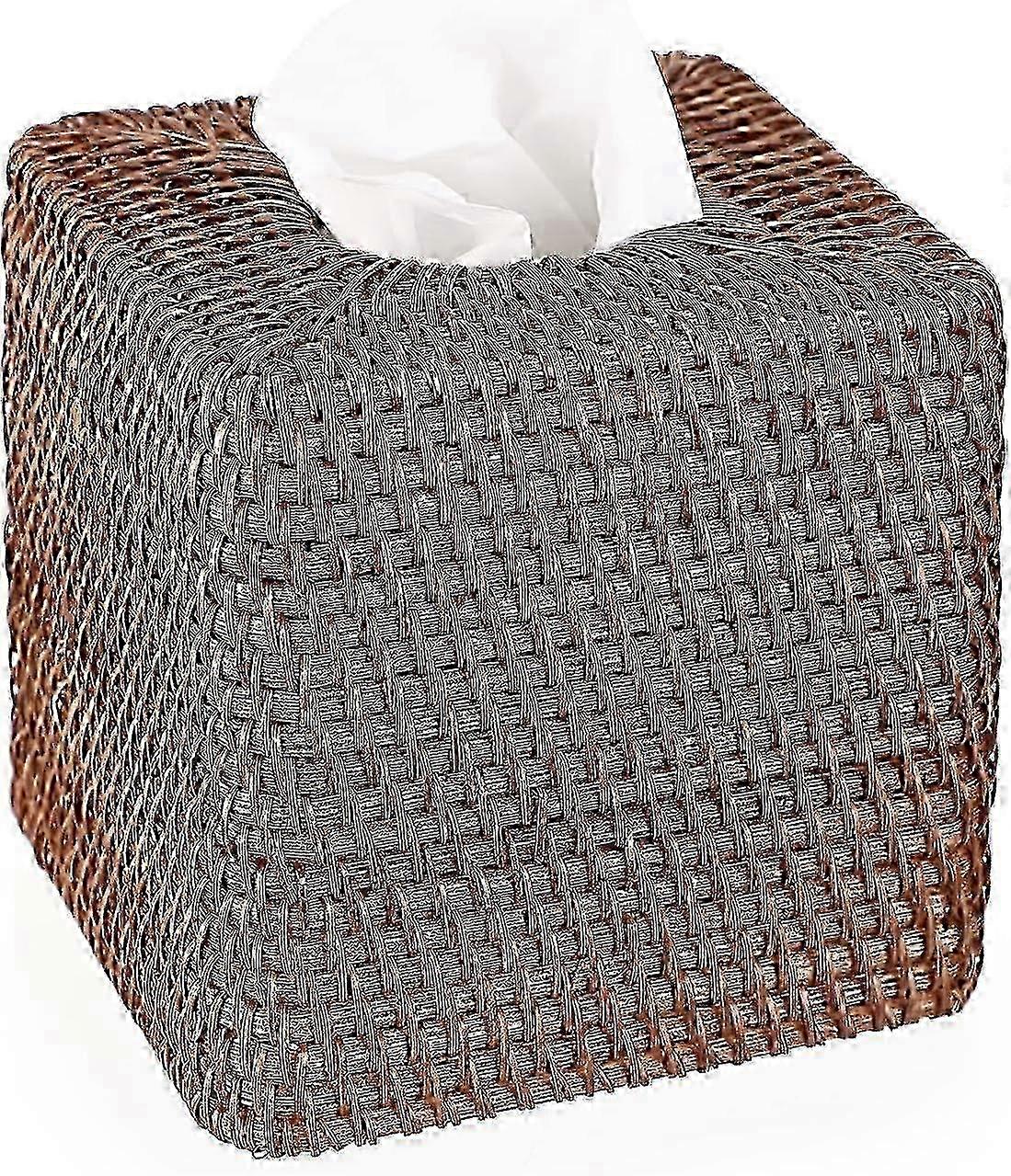 Rattan Square Tissue Cover Holder Decoration Tissue Organizer Box Cube Tissue Paper Holder