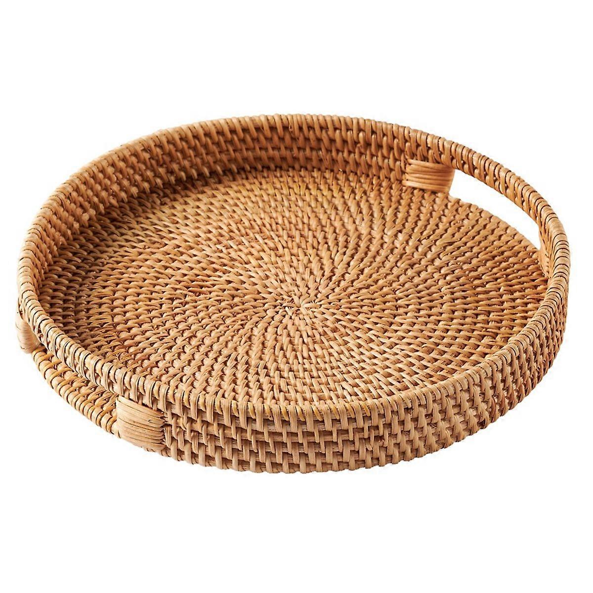 Rattan Serving Tray 30cm, Woven Serving Trays with Handles