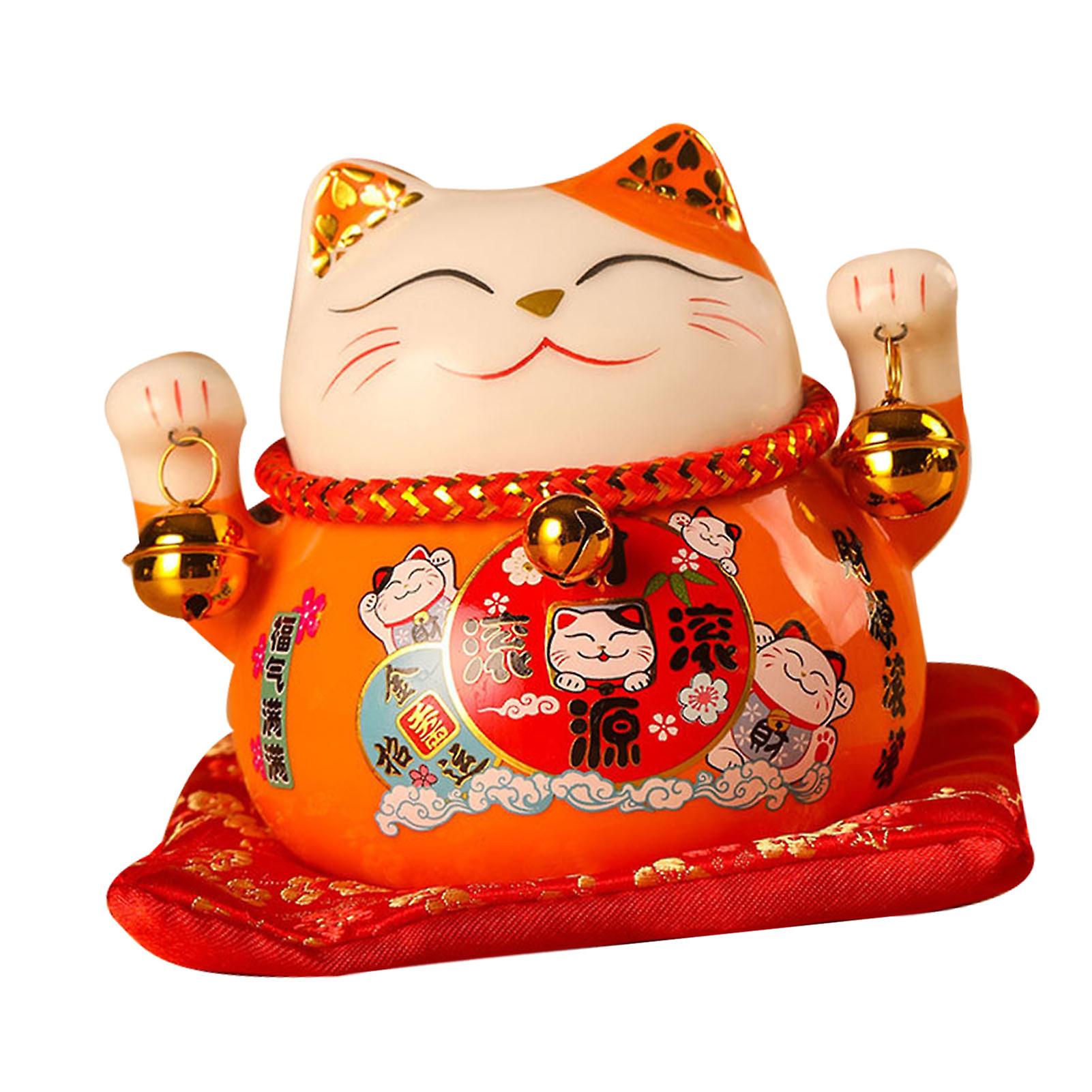Lucky Cat Coin Bank 4.5in Exquisite Cute Bring Luck Good Wish Ceramic Fortune Cat Saving Pot Desk Decoration Orange