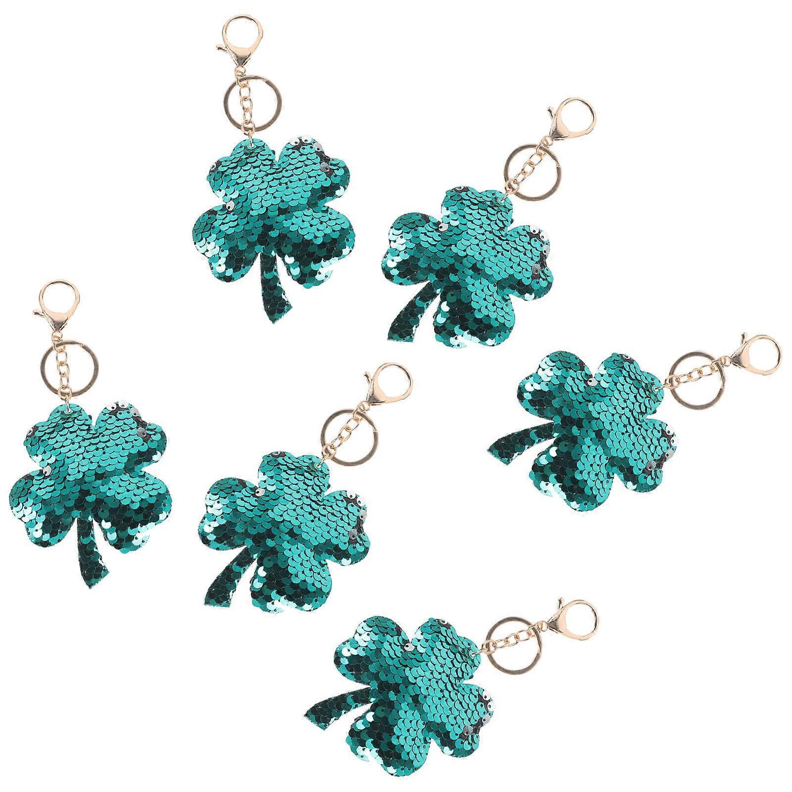 Lucky Clover Keychain Pendant Shape Green Color Sequins Hanging Decoration 6Pcs