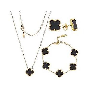 ラッキークローバーセットネックレスペンダントイヤリングブレスレット女性女の子用19k金メッキチャームかわいいジュエリーレディース女の子ギフト
