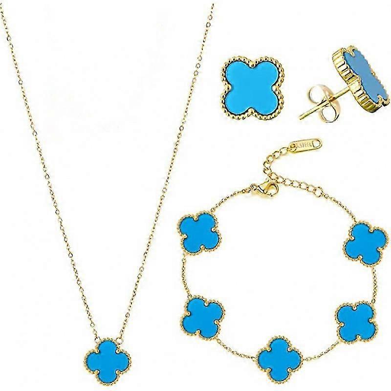 Lucky Clover Sets Necklace Pendant Earrings Bracelet For Women Girls 19k Gold Plated Charm Cute Jewelry Womens Girls Gift