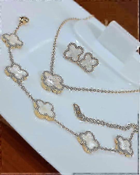 Lucky Clover Sets Necklace Pendant Earrings Bracelet For Women Girls 19k Gold Plated Charm Cute Jewelry Womens Girls Gift