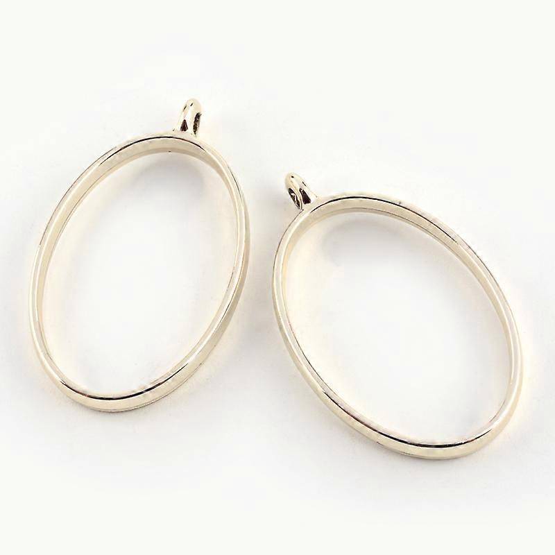Rack Plating Alloy Oval Open Back Bezel Pendants For DIY UV Resin Epoxy Resin Pressed Flower Jewelry Cadmium Free & Nickel Free & Lead Free Golden for