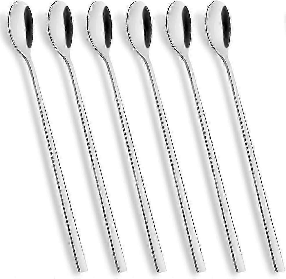 PREMIUM QUALITY: Our 6 Pieces Long Handle Spoon Crafted from high-class 18/10 (410) Stainless Steel, Very Durable & Sturdy, and Good Quality will Last for years. LENGTH: 26 mm for total length, perfect for most glasses and pitchers, Also used as ice cream spoons, ice teaspoons, coffee mixing spoons, cocktail stirring spoons. And Long enough for tall coffee mugs. Suitable for bar, home, party use. LIFE STYLE: Luxurious and Stylish Design with Ergonomic Feel, Superior Quality Mirror Finished Surface, Smooth Edge definitely no rough spot. Enjoy your Leisure times in this summer! WASHING: Dishwasher safe( (no strongly alkaline,highly acidic or strong oxidizing cleanser)),very solid and durable . MIRROR FINISH:Modern design with comfortable handling, simple and elegant with reflective mirror finish, easily match with different kind of flatware or silverware!