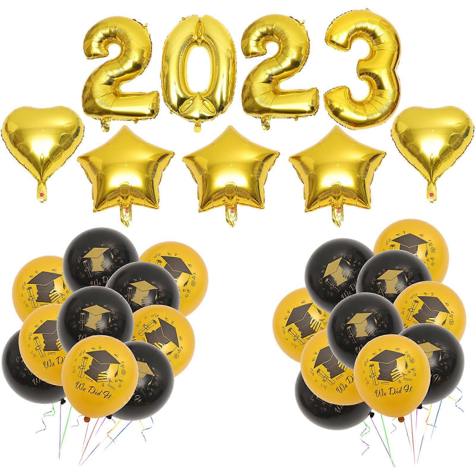 Golden Graduate Ribbon Balloons for Party Decoration Made of Latex and Aluminum Film 1 Set