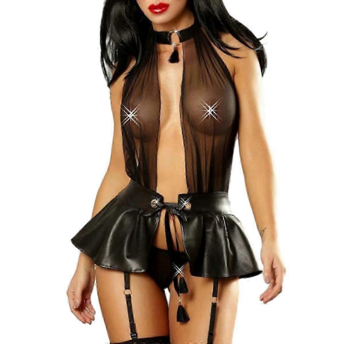 Latex Minrock Women's Sexy Costumes for Hip Wrap, Sexy Fashion, Faux Leather, Lace Lingerie, Nblack XXL