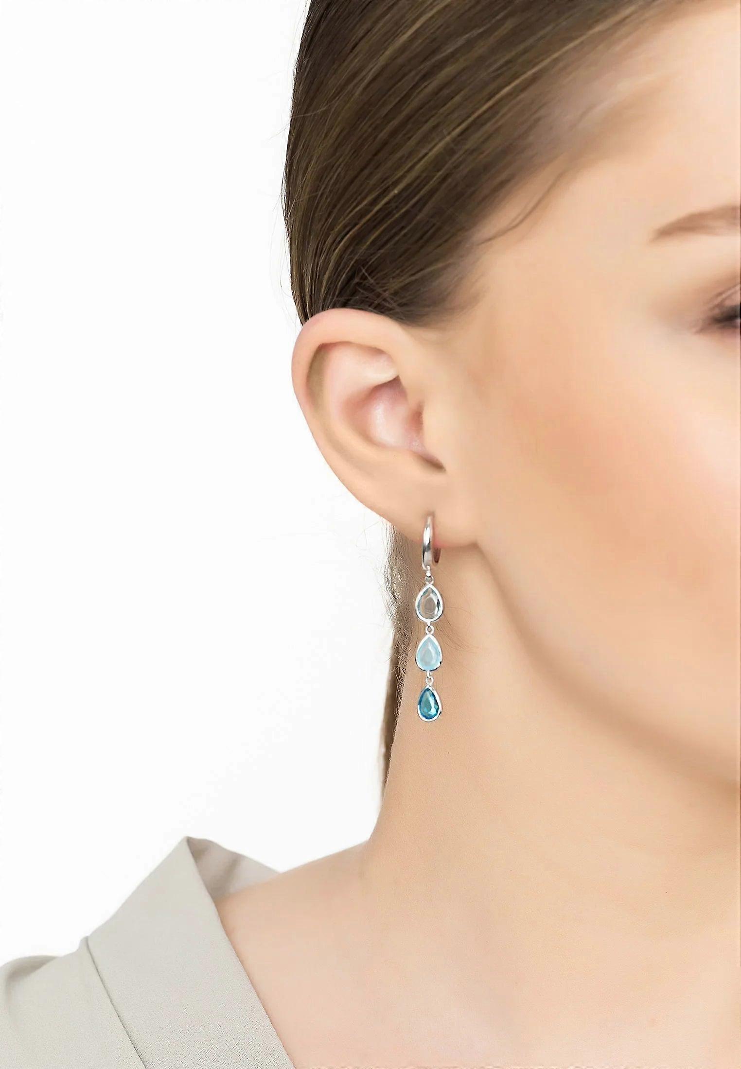 Latelita Sardinia Triple Teardrop Earrings in Silver with Blue Topaz, Blue Chalcedony, and Swiss Blue Topaz - Female