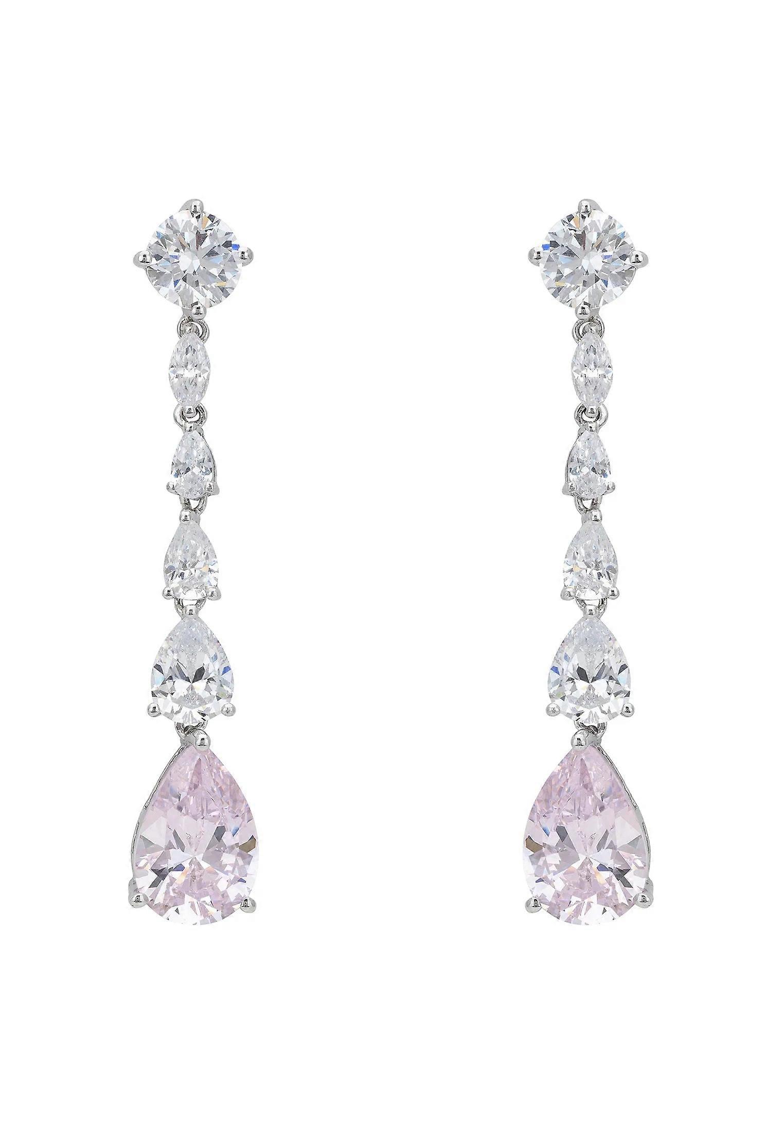 Latelita Women's Morganite Silver Drop Earrings with Simulated Diamonds and Lab-Grown Morganite - 5.2cm/1.2cm x 0.8cm - Sterling Silver - Female