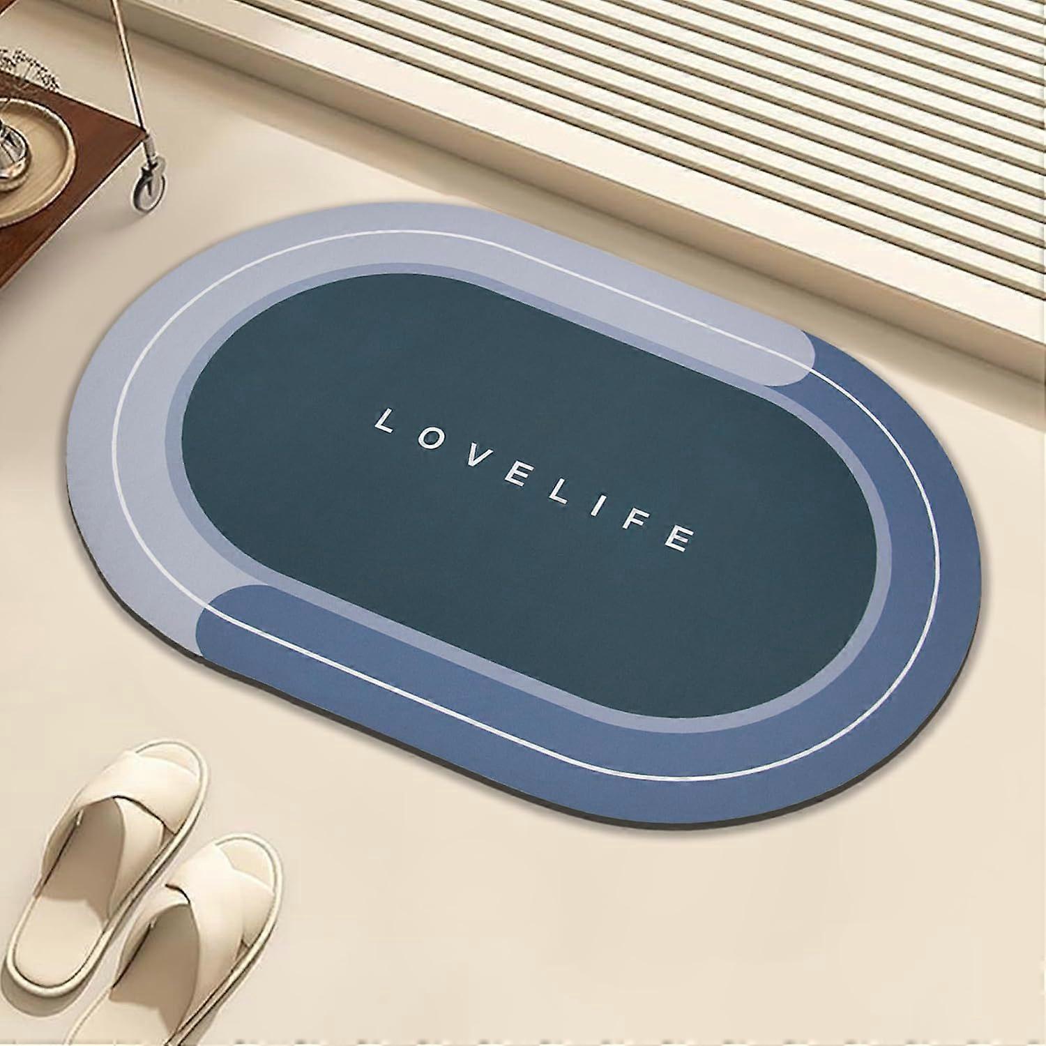 Rubber Bath Mats Quick-Drying Non-Slip 16.9x26.7in Super Absorbent Oval Bathroom Rug Blue for Kitchen Sink Shower Bathtub