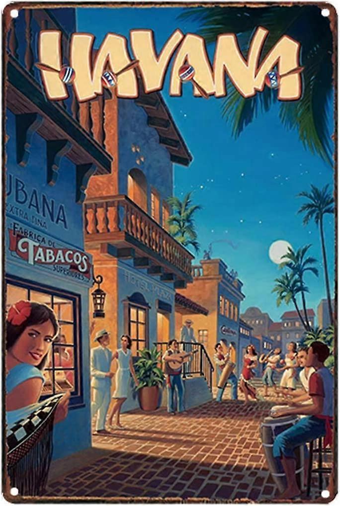 La Havana Cuba Travel Poster Style Metal Tin Sign for Bar Cafe Garage Wall Decor Retro Vintage 7.87 X 11.8 inches