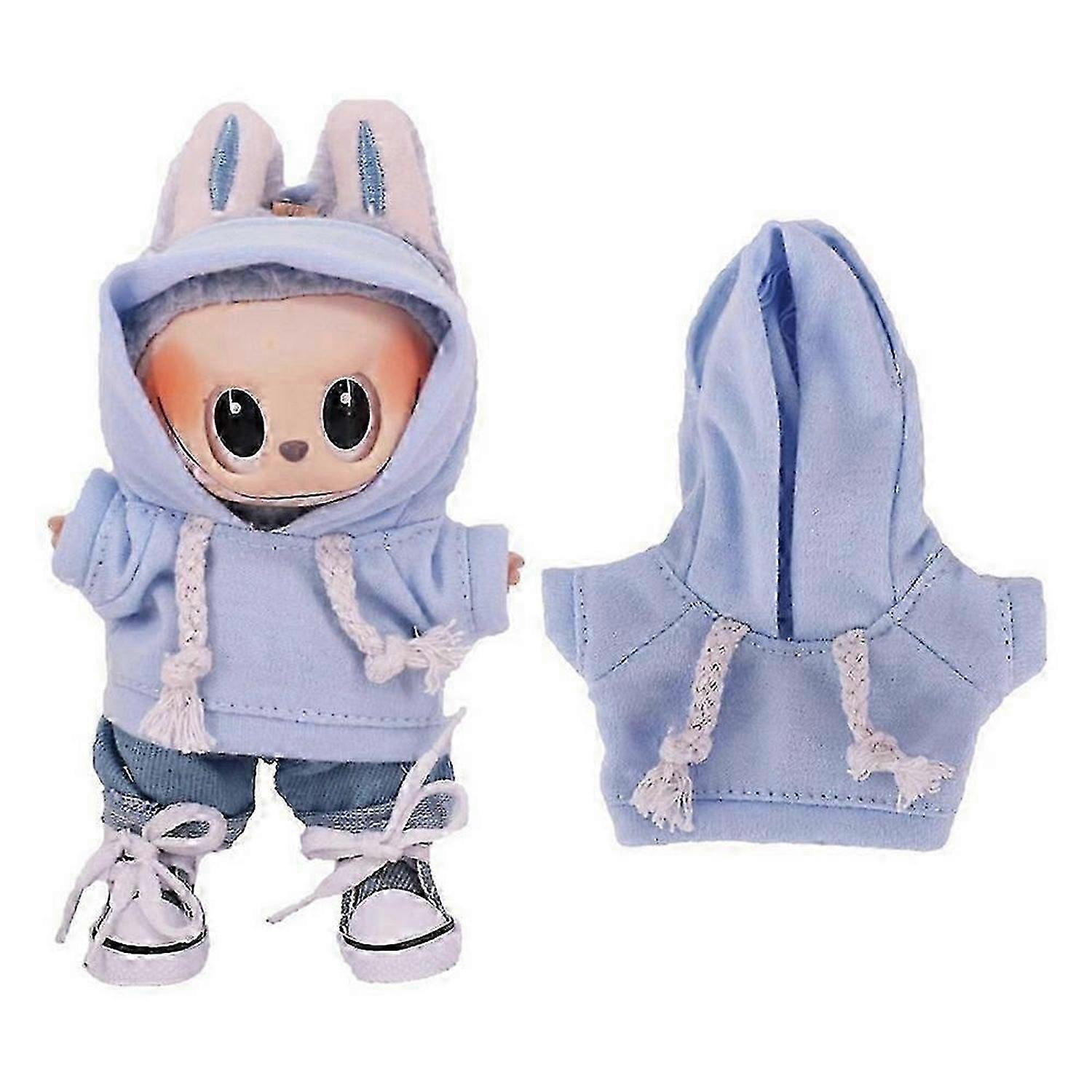 Solid Color Hoodie for Labubu 17cm Mini Figure Fashion Hooded Top Plush Doll Clothes - xm2745-KAKA
